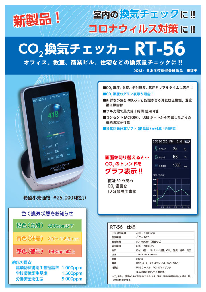 取扱製品 作業依頼書 騒音・振動測定器 地震計 微粒子測定器 医用測定器 表示装置 風速計 学校環境衛生測定器 室内外環境測定器 放射線計・デジタル粉じん計 関連製品 環境衛生関連資料・大会等予定 会社概要 お問い合わせ 最新情報 新製品を追加しました。 RT-56発売開始しました。 RT-56紹介ページへ