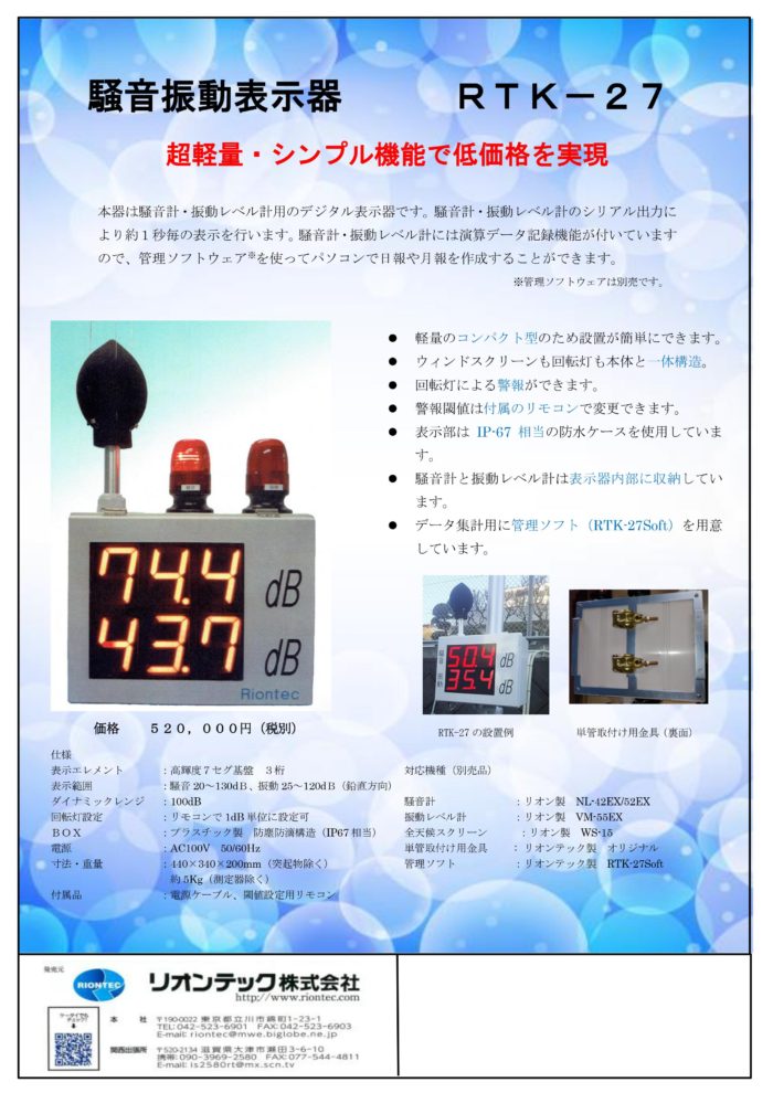 | 表示範囲 | 騒音 20~130dB 振動 25~120dB(鉛直方向) |