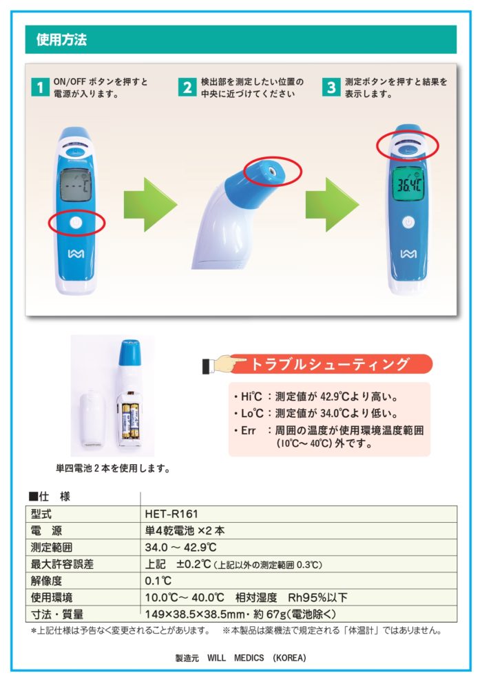 取扱製品 作業依頼書 騒音・振動測定器 地震計 微粒子測定器 医用測定器 表示装置 風速計 学校環境衛生測定器 室内外環境測定器 放射線計・デジタル粉じん計 関連製品 環境衛生関連資料・大会等予定 会社概要 お問い合わせ 非接触サーモメーター HET-R161 表面温度を測定してのスクリーニングに! (※薬機法で規定されている医療用体温計ではありませんので スクリーニング用としてご使用ください) 価格 お問い合わせください <<非接触サーモメーターのPDFカタログはこちら>>
